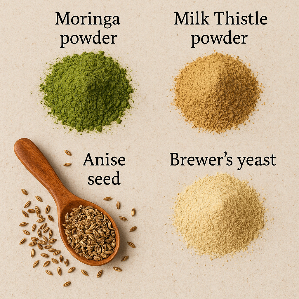 - Milk Thistle Seed – Supports prolactin levels and hormone balance, which can help boost milk production.